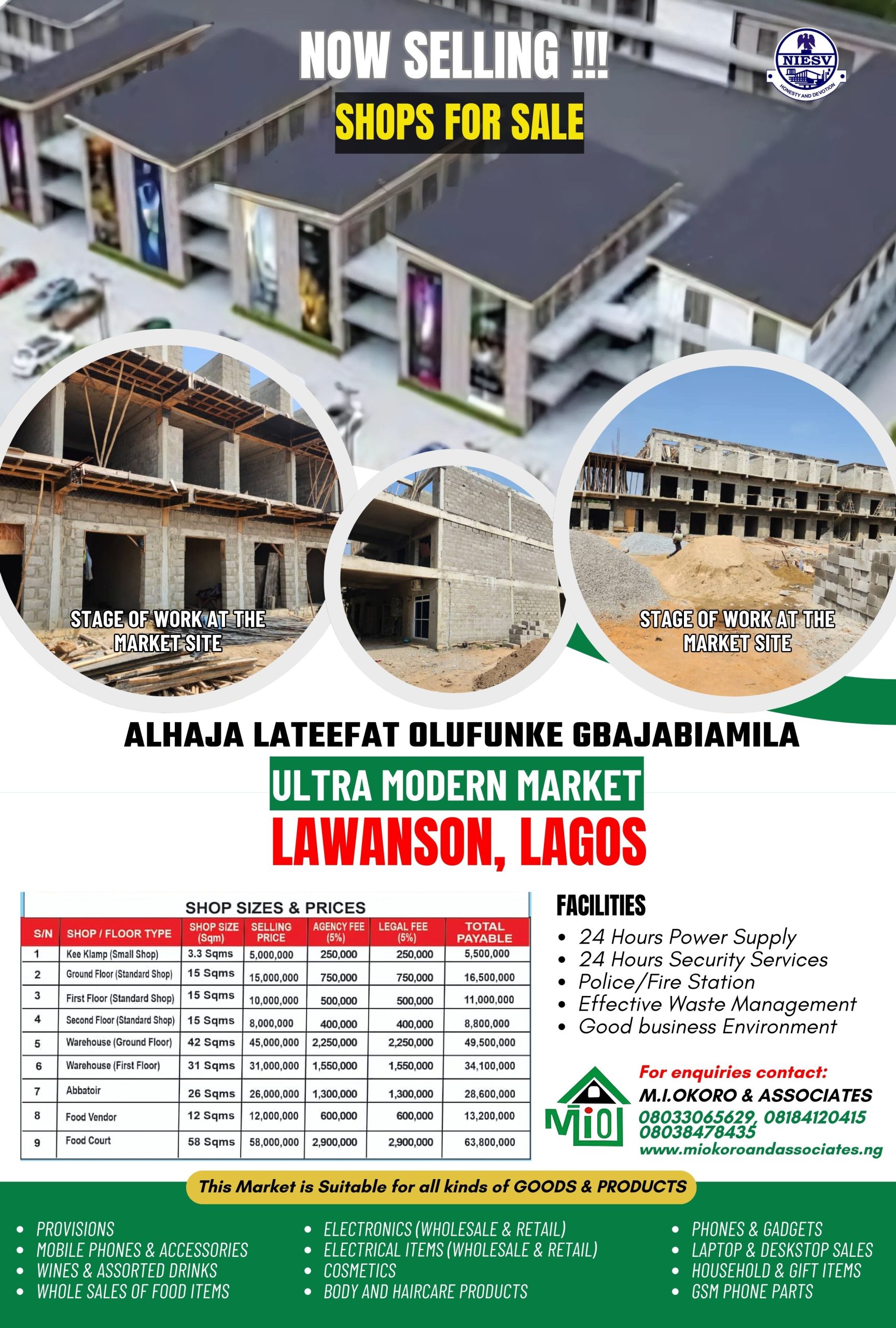 1. Kee Klamp ( Small Shop), | Shop Size : 3.3 Sqms | Price: N5,000,000 | Agency Fee: (5%) N250,000 | Legal Fee: (5%) N250,000 | TOTAL PAYABLE = N5,500,000.